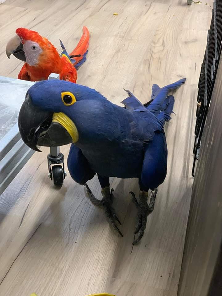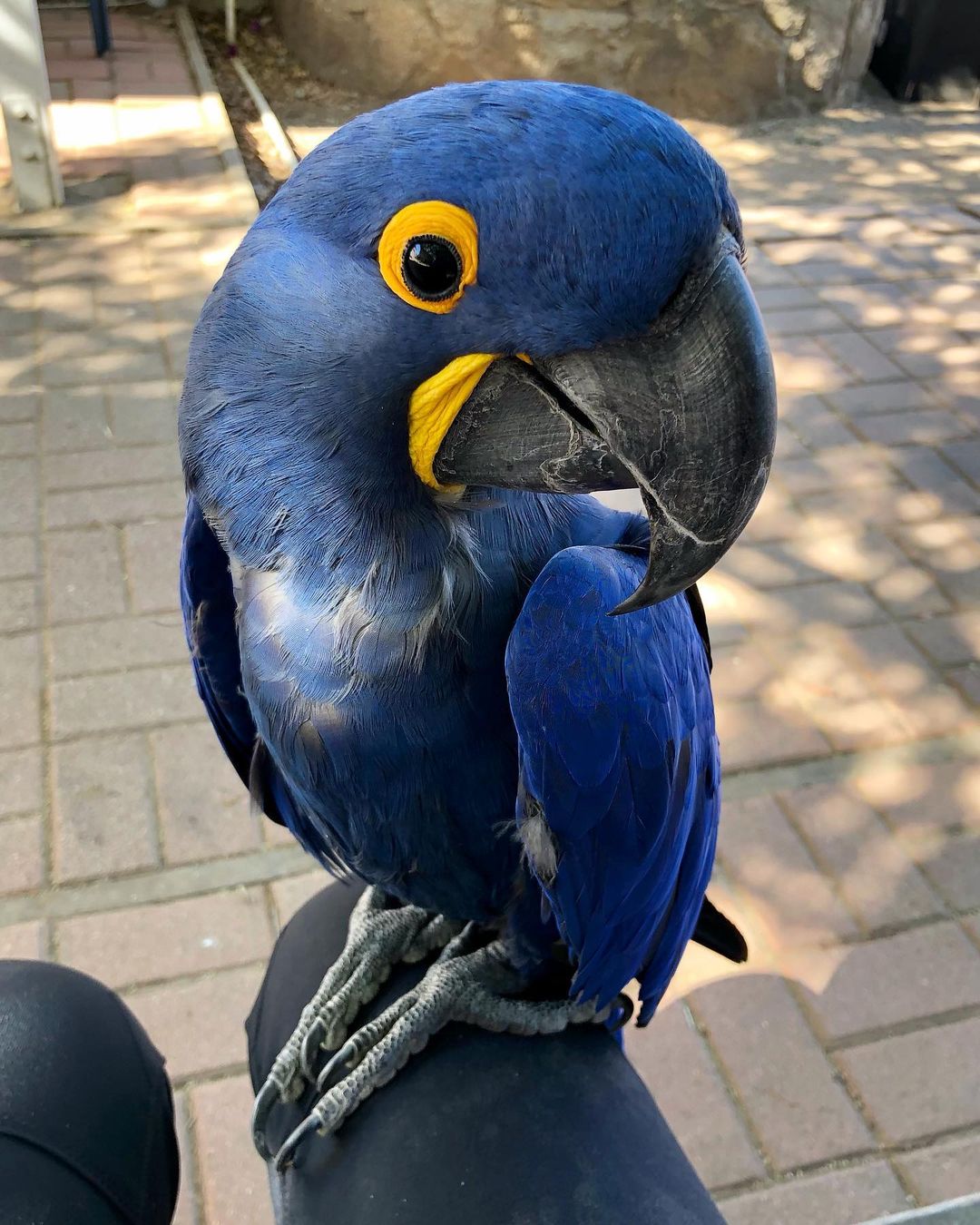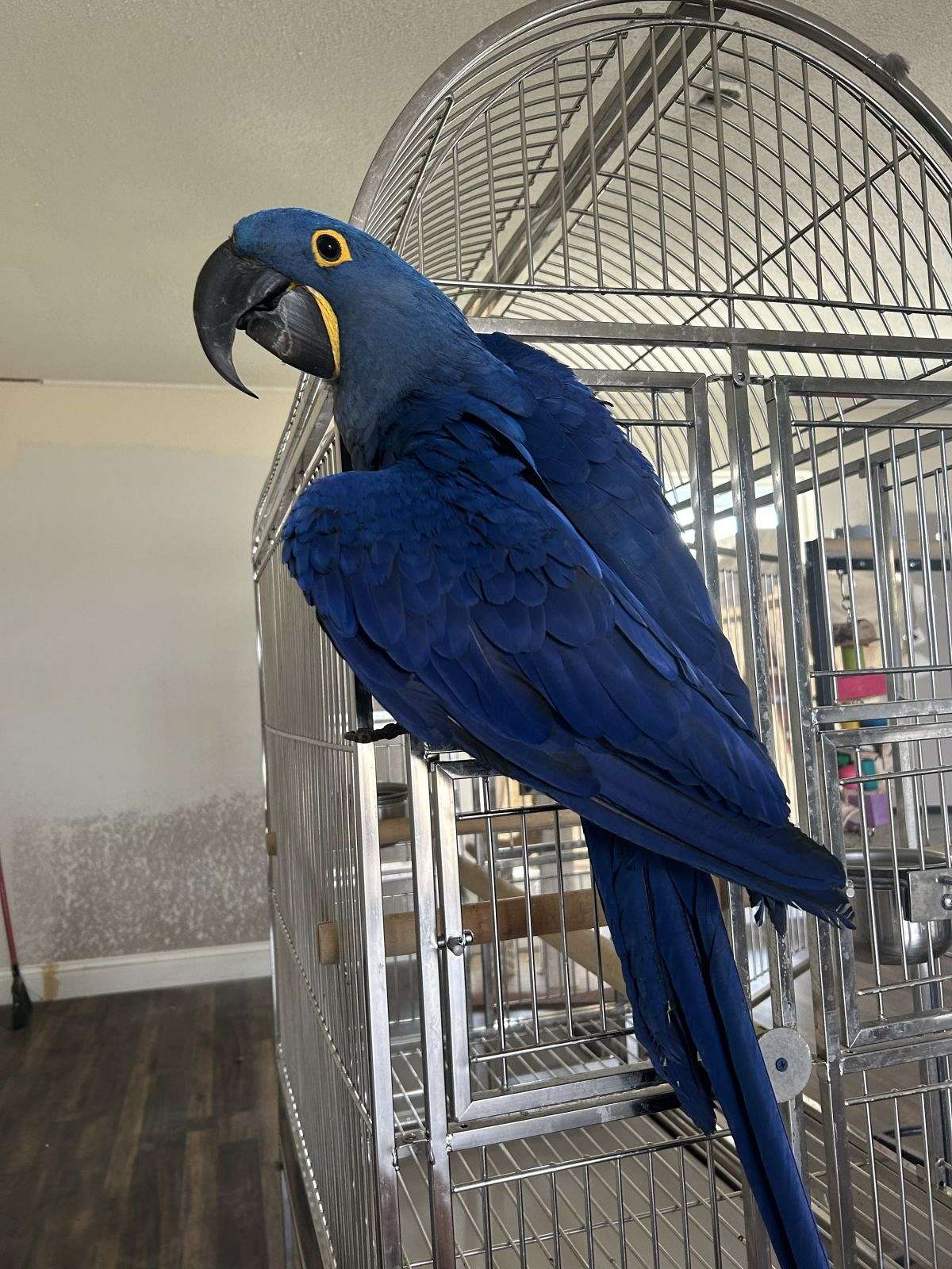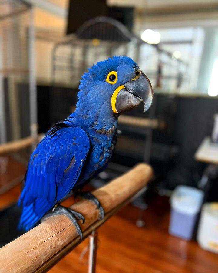 Los guacamayos jacintos son la especie más grande de loro, conocidos por su llamativo plumaje azul y su impresionante tamaño. Estas aves sudamericanas se caracterizan por sus picos grandes y poderosos, marcas oculares amarillas y patas fuertes con dos dedos hacia adelante y dos hacia atrás (zigodáctilos). Son aves inteligentes y sociables que emiten un potente canto para comunicarse dentro de sus bandadas.
